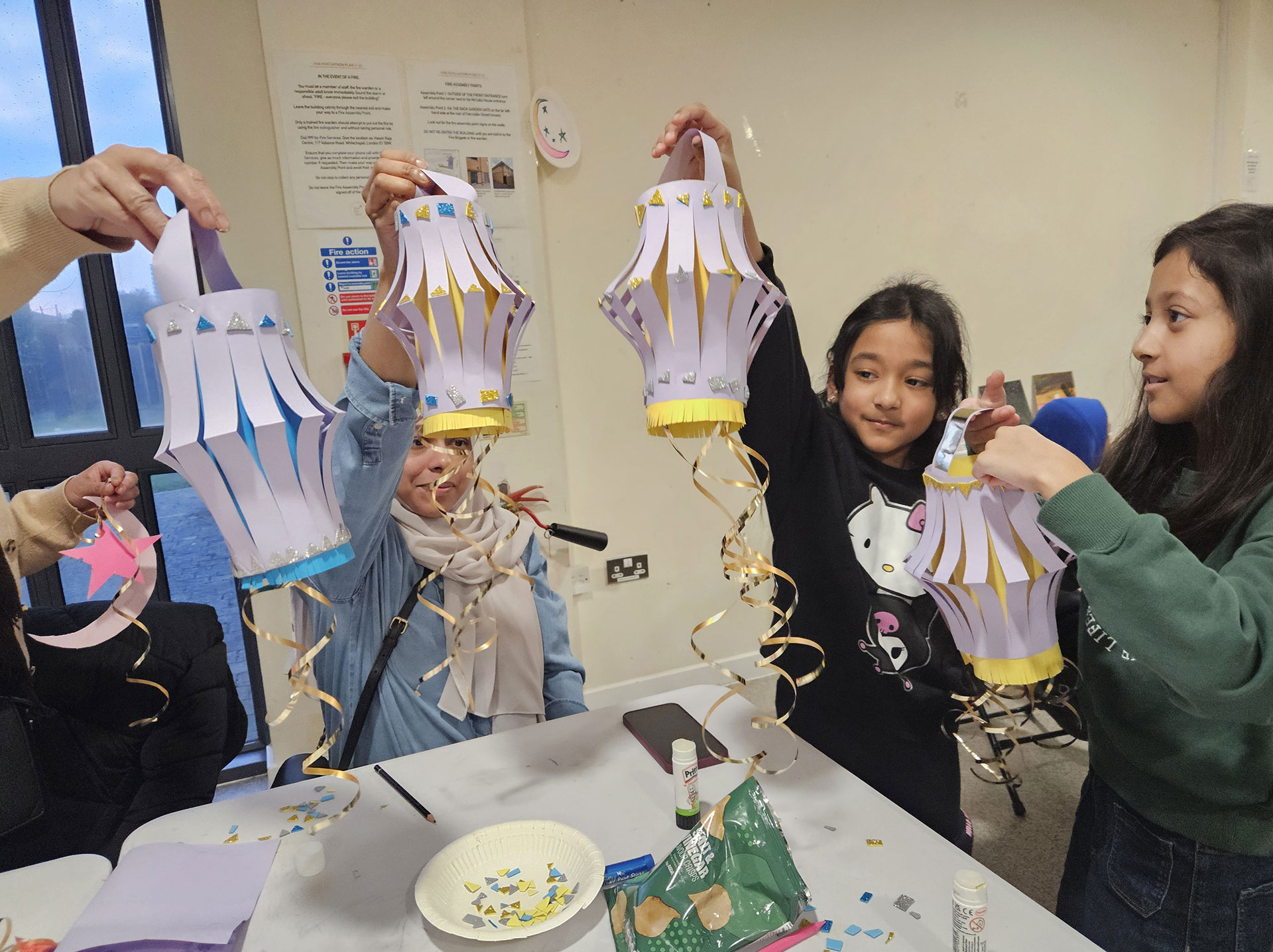Our Ramadan Lights creative session was a resounding success, led by storyteller Rez storyteller and Delara, a youth arts facilitator. Designed to foster intergenerational dialogue, the creative session brought together children aged 5–10 and their guardians. Participants ‘broke the ice’ with group warm-up activities, and by decorating moons and stars.